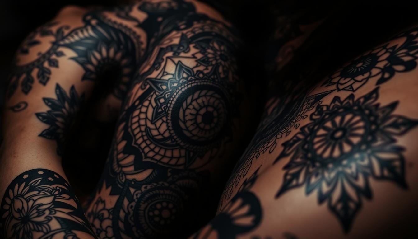 These tattoos started in traditions like Polynesian pe’a or Japanese irezumi. Now, they mix old patterns with new ideas. Artists use modern tattoo designs to honor the past while exploring new ways.