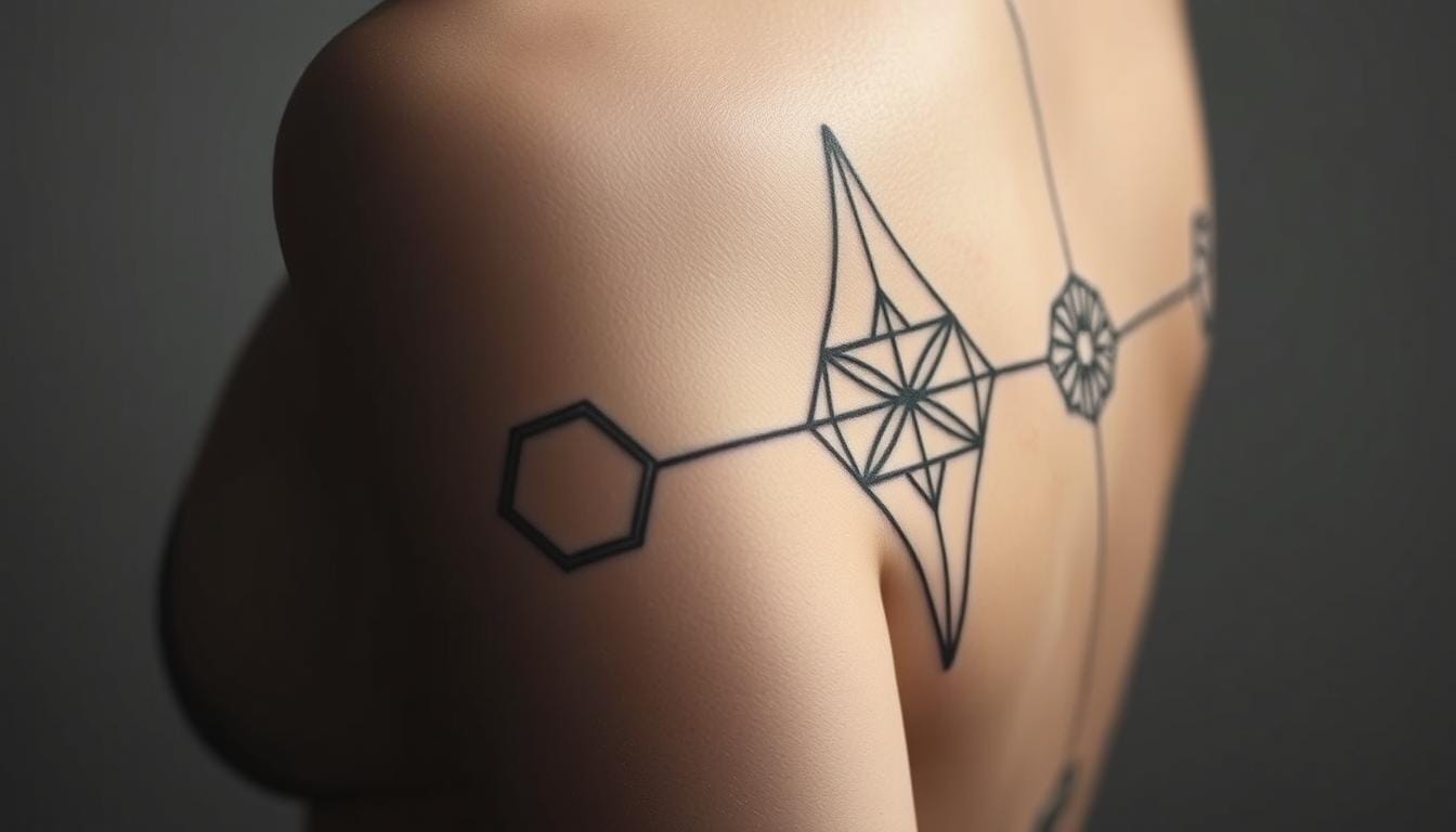 Geometric tattoos tell stories with shapes. They use space and form to show depth. These tattoos are like wearing art that changes with light.
